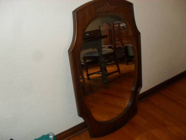 Mirror wall hung, wood, made by Lenoir, 44" tall x 27" wide, $150.00 (cash only)