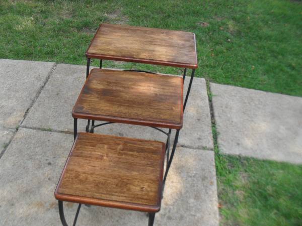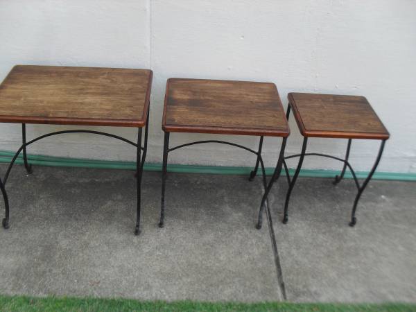Nesting Tables (3), wood/cast iron, 15 1/2" x 21 1/2" x 20", 14" x 16" x 19", 11 3/4" x 12 3/4" x 18", $130.00 (cash only)