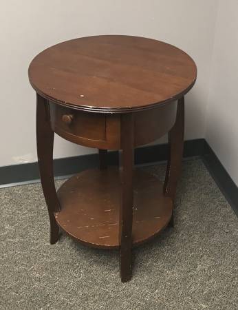 Pottery Barn Kids Sleigh Side Table 26 Inches Tall 19 Inch Diameter with Small 7 x 9 inch Drawer kept in my non-smoking pet free home since new Call, Text, or Email Anytime I will remove this ad...