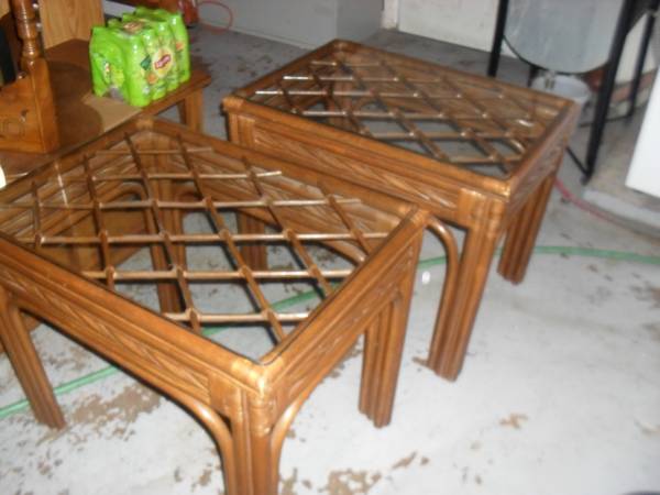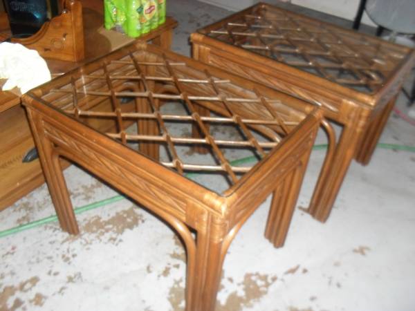Vintage Bohemian Brentwood Bamboo Side Table with glass top, 28" x 20" x 23 1/2", $260.00 (cash only)
