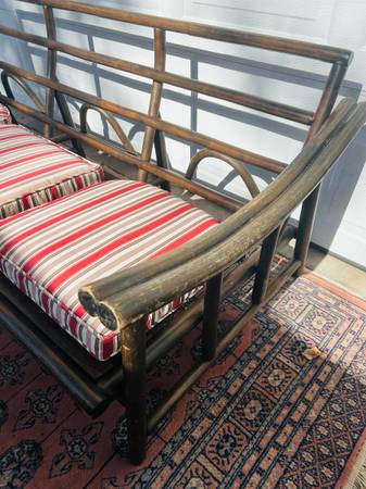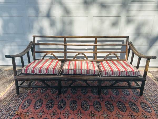 Circa 1960’s bamboo rattan 3 seater porch sofa, intended for covered porches or sunrooms, not outdoor use.