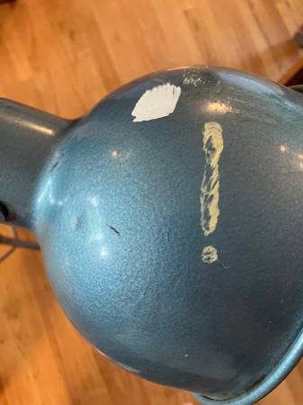Some scratches on the adjustable arm and what looks to be paint on shade, please see the photos.