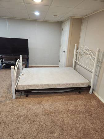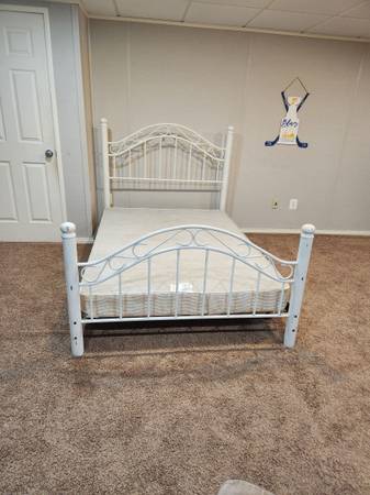 Solid full size bed. White, Easy to assemble, Include box spring, Not include mattress.