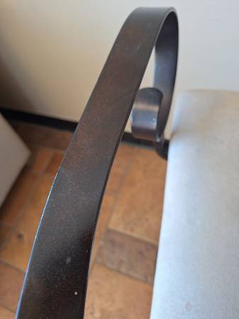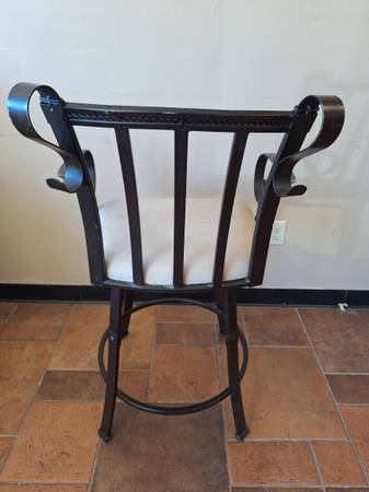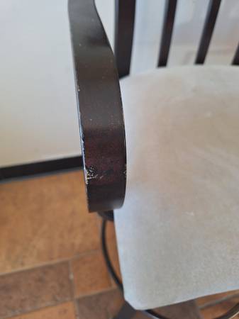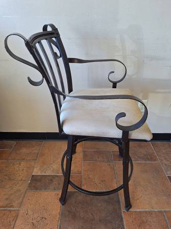 Price is firm. Will only hold if paid in full or someone is on the way. Located in Saint Peters close to Mid Rivers Mall. Dark, oil rubbed bronze color, swiveling barstool. Seat height is 25.5", seat width is 19", seat depth is 17", it is 39.5" from the floor to the top of the back, it is 21.5" from the outside of one handrest to the outside of the other, and it is 31.5" from the floor to the top of the hand rest. Comes from a smoke free home. Very sturdy and well made. Normal cosmetic wear and tear as seen in the pictures. I will gladly load it up for you I to your ready vehicle.