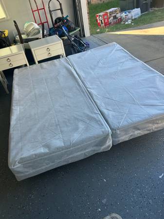 Two boxspring make a king bed size , smook free pets free used in a guees rom always with cover like new !