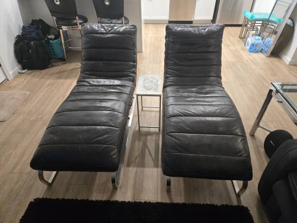 MOVING AND IT HAS TO GO...SMOKE AND PET FREE HOUSE...AVAILABLE TO SHOW BY APPOINTMENT. CASH OR VENMO ONLY. (2) LEATHER AND CHROME CHAISE LOUNGES...HARDLY EVER SAT ON. NEW THEY WERE $ 1000 EACH...$...