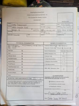 Gentle Halter broke virgin bull , weighed 1080 pounds 10-24-2025. Double vaccinated, dewormed, pink eye vac. Breeding Soundness Exam done