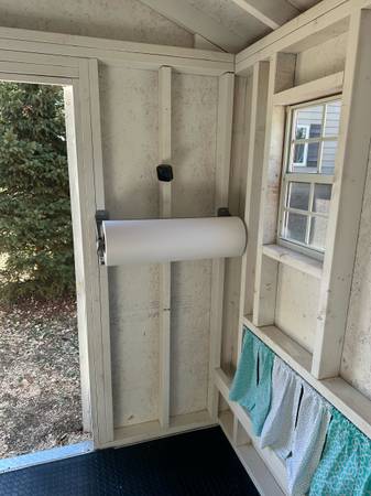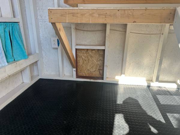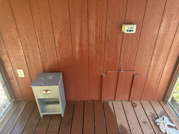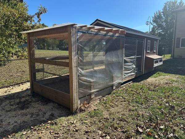 8 x 16 professionally built chicken coop with all the extras has an air conditioner comes with hang down warmers for the chickens automatic battery operated door rubber floor mats that are easily removed for easy cleaning clear vinyl that can be added in the winter. Keep the wind out of the coop. Electric outlets, light switch with a programmable light. The price is nonnegotiable. It is the buyers responsibility to move and relocate the chicken coop. The dirt bath would need to be disassembled moved and then reassembled.
