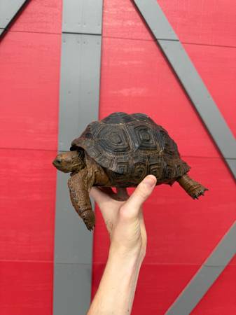 Aldabra tortoise. It is currently on a mix of fresh greens, romaine lettuce, and grass hay. 8.25+ Inches. Located in Fredericktown, MO: Shipping available. Text for more info.