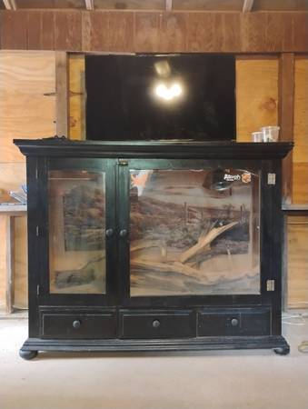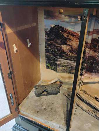 Large reptile tank we used for my son's bearded dragon. Perfect set up for someone starting fresh. Dragon has passed away so there is no use for it anymore. It is 65 in. long 22 in. deep 51 1/4 in. tall. This thing is also HEAVY. Bring someone to help or wait until my husband is home to pick up. Can deliver for a fee depending where you are located.