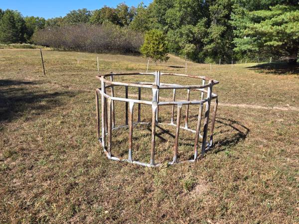 6 foot hay ring. Solid. Seams are welded together. Cannot take apart. I used it until I started getting larger round bales locally. The larger bales fit if you take a little off them. Works great for the smaller round bales. Will load it on your trailer or truck for you. $100 firm.