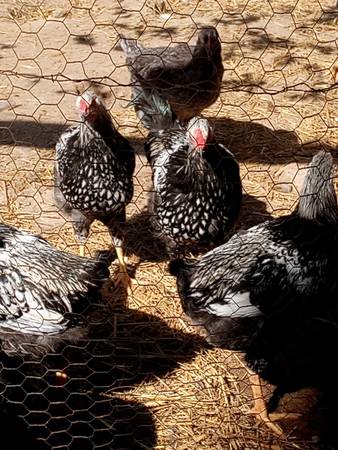 I have 3 blue golden laced and 3 silver wyandotte hens, getting ready to lay soon, I just have to many. Pick up in Owensville Mo. Text preferred.