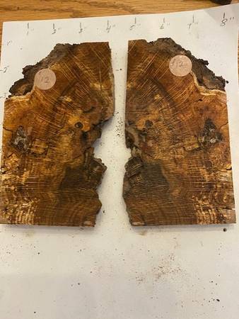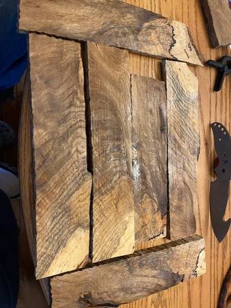 Assorted sizes of burl spalted oak slabs, scales, and handle material. All are PRICED INDIVIDUALLY. They are 3/8" to 5/8" thick, dry, some have a live edge. I have much more than you see in these photos. All are semi stabilized with one treatment. Pores are still open to receive your treatment.
