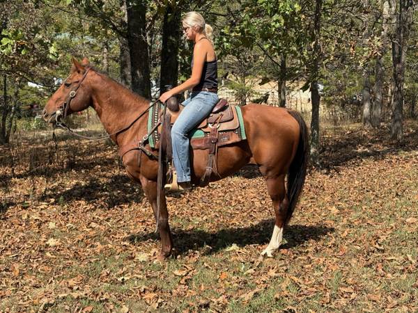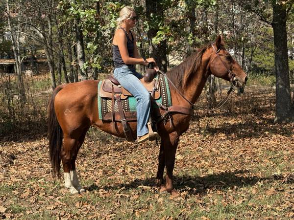 Lucky is a Chestnut Quarter Horse Gelding that has a clover brand on his hip, he is around 12 years old and stands about 14.3 hands tall. Nice gelding that will one hand neck rein, easy to catch and gentle. $4,500 Call or text only email not checked show contact info