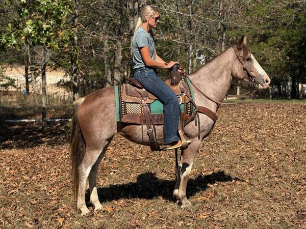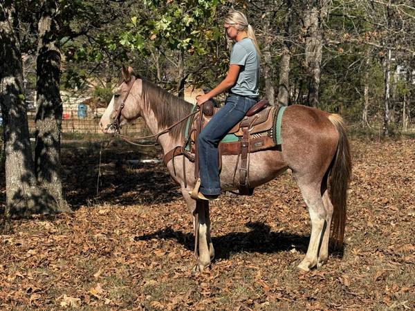 Freckles is a red roan quarter horse mare; she stands about 14.2 hands tall and is around 7 years old. Nice mare that stands to be saddled and mounted, has a good mind and is willing to do and go whatever direction you want to go. She has been taken through the barrels, crosses water, traffic safe, rides out slow and gentle and is easy going. Has no fancy handle but goes where you point her and more whoa than go. $3,500 Call or text only email not checked show contact info