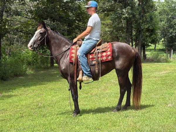 Jade is a black 15-year-old walking horse mare that stands about 15.1 hands tall. Nice mare with a good shape, easy to catch and handle she has a full blaze on her face. Jade has been trail ridden and is good for about any level rider, no fancy handle but rides quiet and gentle. $3500 Call or text only email not checked show contact info