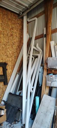 New 5" gutters. Bought 6" and they installed 5". They replaced them next day and left the 5". Have 25', 14', 10' and the rest. Gitters have screws and screw brackets. Downspouts included. Text if...
