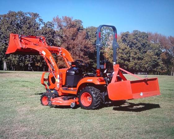 It comes equipped with a 4-foot box blade and a 60-inch belly mower with sharp blades, making it ideal for mowing, grading, and general property maintenance.