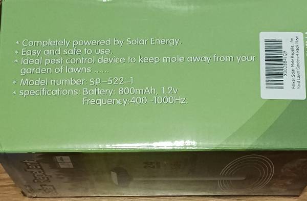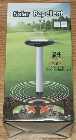Here for sale is a 4 Pack - Fillixar Solar Repellent - Easy/Safe for People & Pets - Completely powered by Solar energy - Keep Moles & pests away from your garden/lawn - covers 7000sq.ft. These are in brand new condition (once the moles heard I bought this they ran away - I never had to use them).