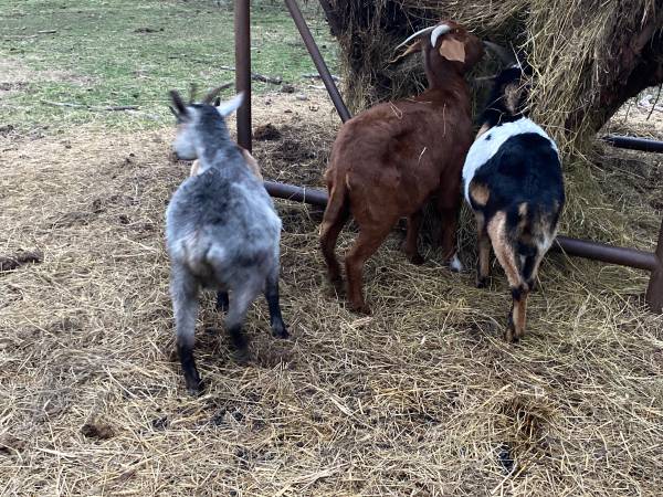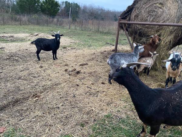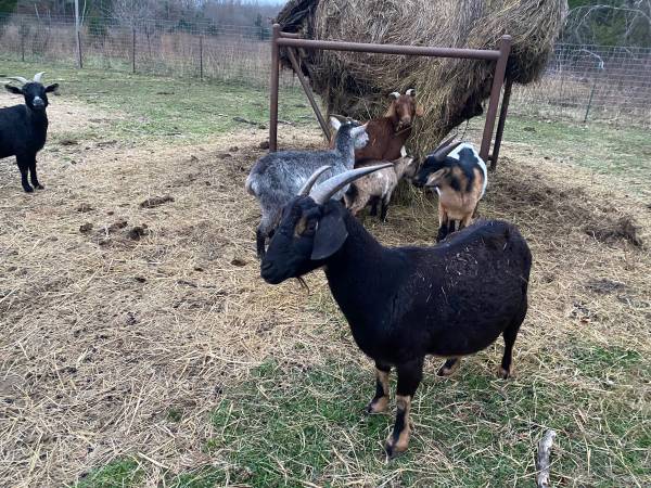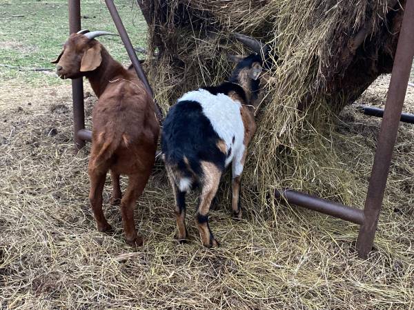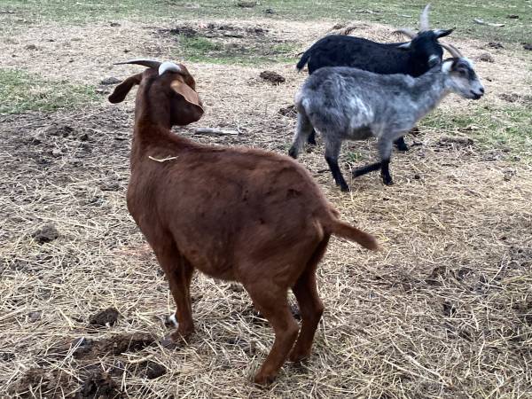 5 does 1 billy Billy is Boer/nubian Does are Boer kiko crosses 4 bred one young doe Young doe is from different buck