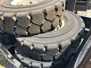 5"X8" double wall 10 ply NHS tires on 6 hole 2 piece rims. 8 available @ $95 each. Electric drive wheel servo motors also available.