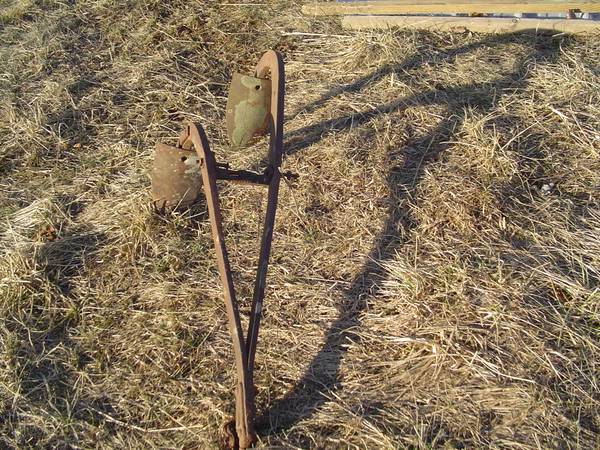 I am selling this 2 shovel antique plow for $40. Its missing the wood handles. It is 45 inches long and 15 inches tall and 1 foot wide. I am located in Sullivan Mo. Call or Text 57three-259-8395