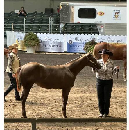This filly is BUILT! Continue to show her and breed her down the road! She is easy to manage, fit, and show. She has had 6 months of professional training and is ready for her new home!