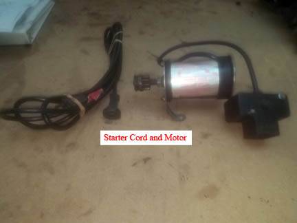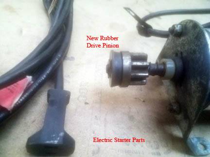 The Electric Starter has a Brand New rubber Drive Pinion. This part usually Dry Rots after several seasons and simply falls off. Without it, the gear on the starter will not travel far enough to engage the Flywheel gear.