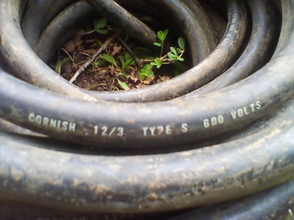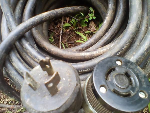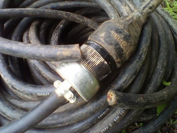I don't text. 100 foot total, 12 / 3 extension cord. Bought as is and never needed it. I assume it was one piece at one time. Has generator style push and twist plug on one end and the other end is where it was cut. Female plug cord is 46-1/2 feet long and the male is 53-1/2 feet. Cord is dirty but good shape otherwise. I try to check email once a day but only during the week.