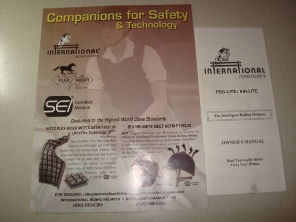 International brand riding helmet, ASTM and SEI certified. Size Medium. Used, in good shape but some of the liner items glued have come loose. I still have the box and protector bag. To see my other...