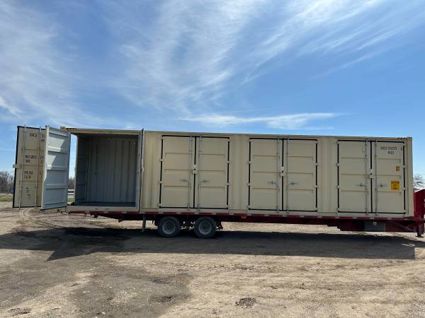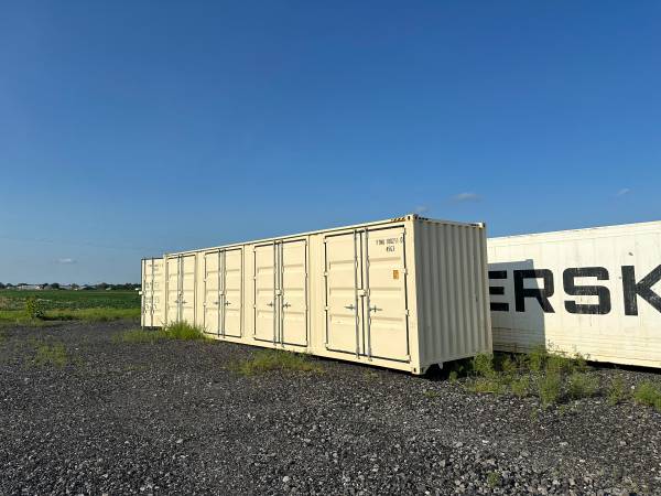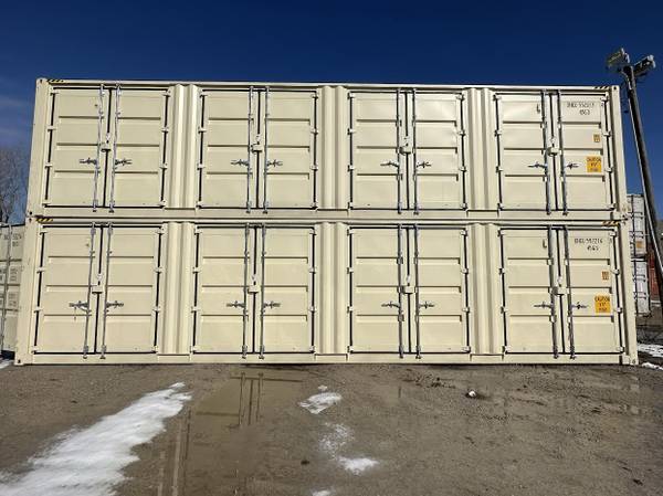 Shipping/storage container Unit is a one trip 40 ft high cube with 4 sets of double doors down one side. Beige in color Price does not include delivery. Call Ken @ for more information.