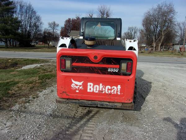 2018 Bobcat S550 Skid Steer – 3735 Hours – Cab, Heat, A/C – Power Bobtach – Smooth Bucket – Tires are like new – Standard Foot Controls – We put new door on it but will need a new wiper motor....