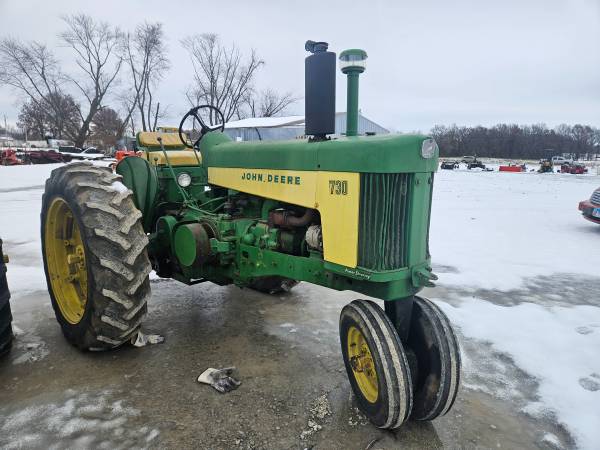 For Sale: 1959 John Deere 730 gas W/Factory 3pt and toplink, starts and runs good, new muffler, seat, and air cleaner, recent overhaul, bored. 90over. Serial number:732595. Very straight tractor. Will trade for other tractors. Delivery available. 5500.00 PH. 618-267-9050