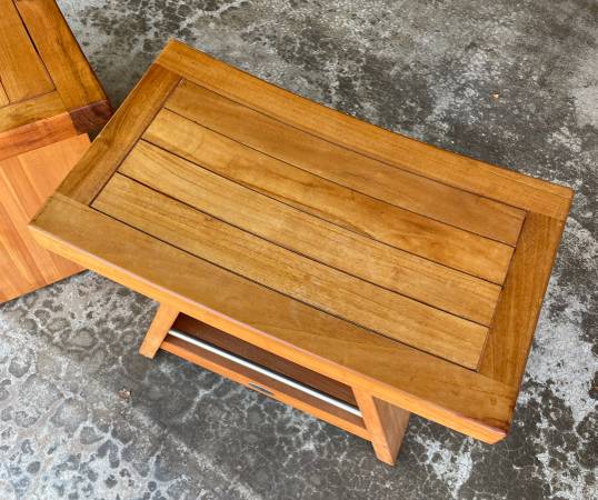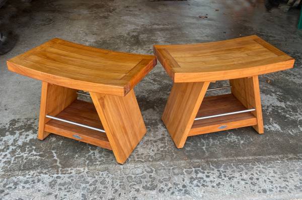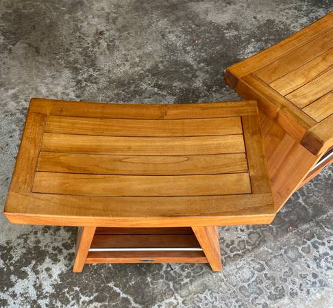 (2) AquaTeak Shower/Spa Natural Teak Benches with Shelves Solid teak wood Natural teak finish Crafted with sustainably harvested teak wood combined with a premium design and aesthetic. Dimensions:...