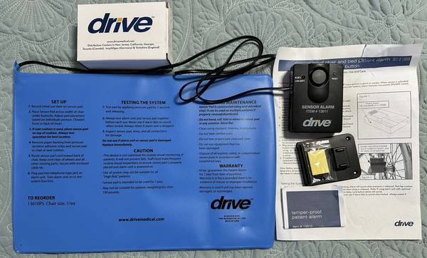 Drive Medical 13608 Pressure-Sensitive Chair and Bed Patient Alarm. Never been used. I have a few in the box $50 or out of box for $30. & a slightly used 1 for $15.