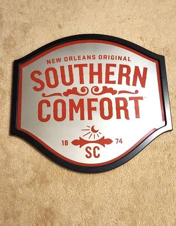 Beautiful NEW "Southern Comfort" Large Bar Mirror in pristine condition! NO scratches, cracks, or breaks. Feel free to inspect! 2 pictures to show front and back of mirror with hanging hardware...