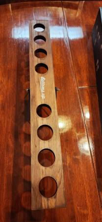 Comes with SeeSaw Wood Board, Stand, 8 glass Shot Glasses, and Instructions.