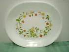 The strawberry Oval Serving Platter 12 1/4" L x 10" W and carries the continuous green vine theme around the strawberry and flower design.