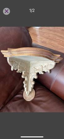 Beautiful corner shelf. 11.5 inches tall, has a plate rest. New, never used.