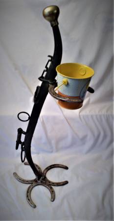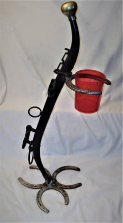 HORSESHOE WELDED VINTAGE ART WITH HAMES SPORTING BRASS KNOB, AND RINGS AND BRACKETS FOR LEATHER HARNESS.
