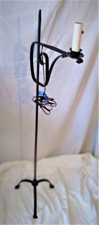 LAMP, FLOOR ADJUSTABLE HEIGHT WITH SHADE 58" AMISH wrought iron