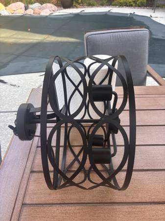 Only 2 years old, great shape! Hangs down 12” Flush mount Width 16” Decorative 8”