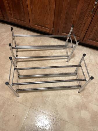 I have two shoe racks my wife has said she no longer needs. I am as shocked as you are. The shoe racks are identical and are roughly 24 inches wide. Please call or text me @ if interested. Thanks...