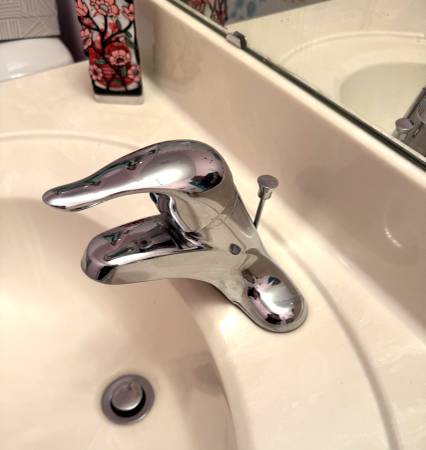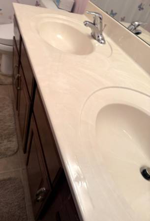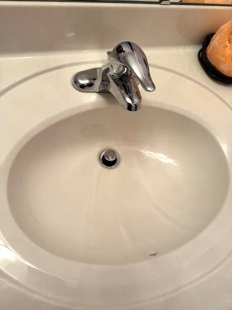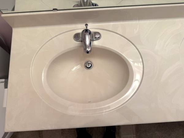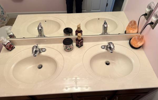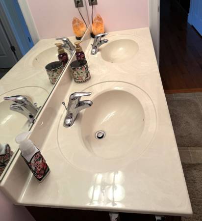 Bath Vanity top - 61" x 22" - with double sinks and two 4" center Delta faucets included. All in great condition. Cash and pick up only.