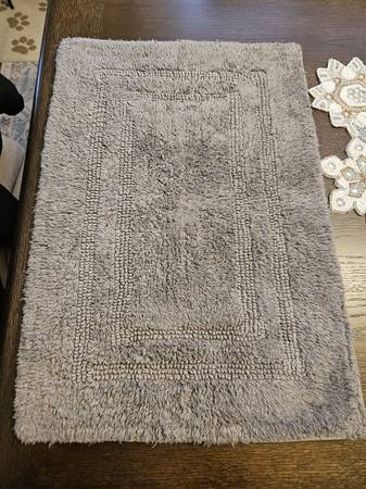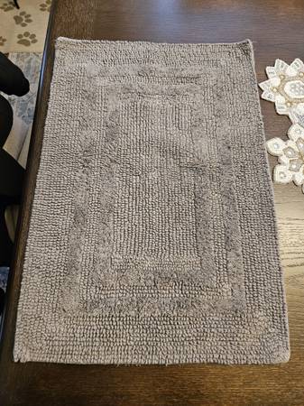 Gray soft fabric reversible bath mat. Approx 24 inches by 16.75 inches. Perfect for small bathrooms. Cash or Venmo, no trades. Non-smoking, dog friendly home.