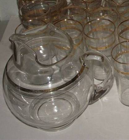 Juice pitcher 8 1/2" to top of spout, 6" wide not including the handle