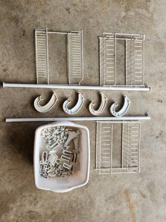 20-30 ClosetMaid Shelves ranging from 6 inches to 4 feet and accessories/hardware to go along with it. If you have any questions, please text me.