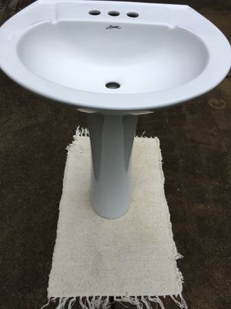 Hometek 2-piece pedestal sink. Stands 33" tall; 17.5" deep and 22.5" across. In excellent shape.