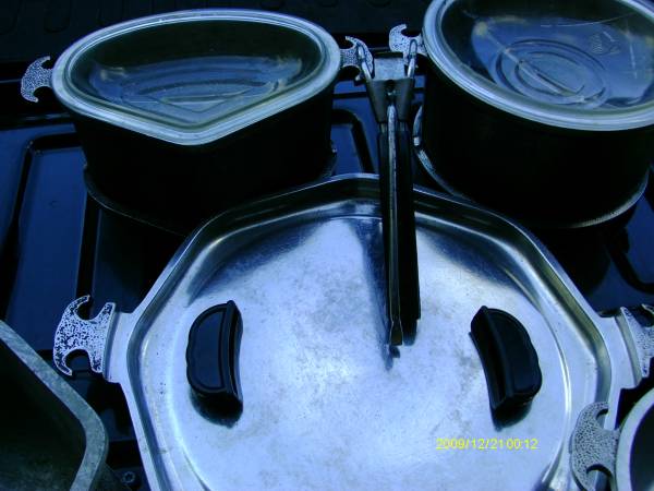10 peace set including a pair of black slip-on handles and a detachable handle. An octagon griddle platter, great for pizza.