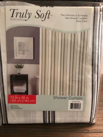 Shower Curtain by Truly Soft Brand New in package. See pics for description. $10 and price is FIRM. (Sells for $49.99 new) Matching brand new full size comforter and shams also for sale for $40....